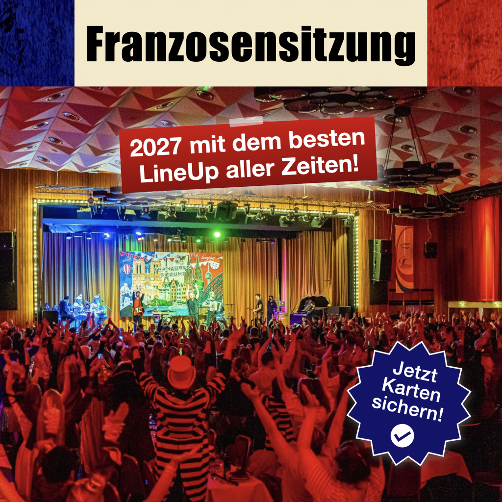 Alaaf! Bagatelle & Stadthalle Köln sind aufgeregt und hocherfreut, euch die Franzosensitzung 2027 am 7. Januar 2027 zu präsentieren!